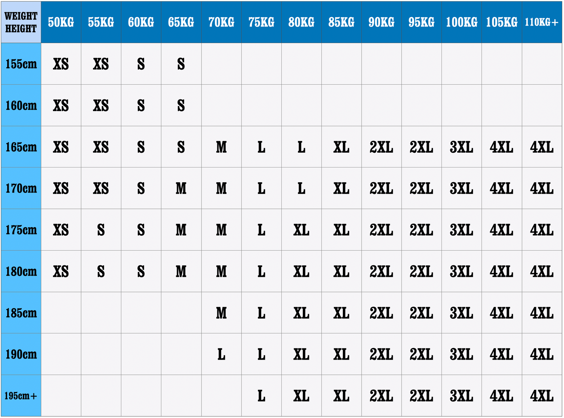 175-190 cm 75,00 kg - 81,00 kg 3XL/185