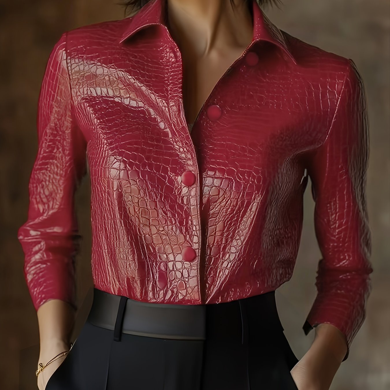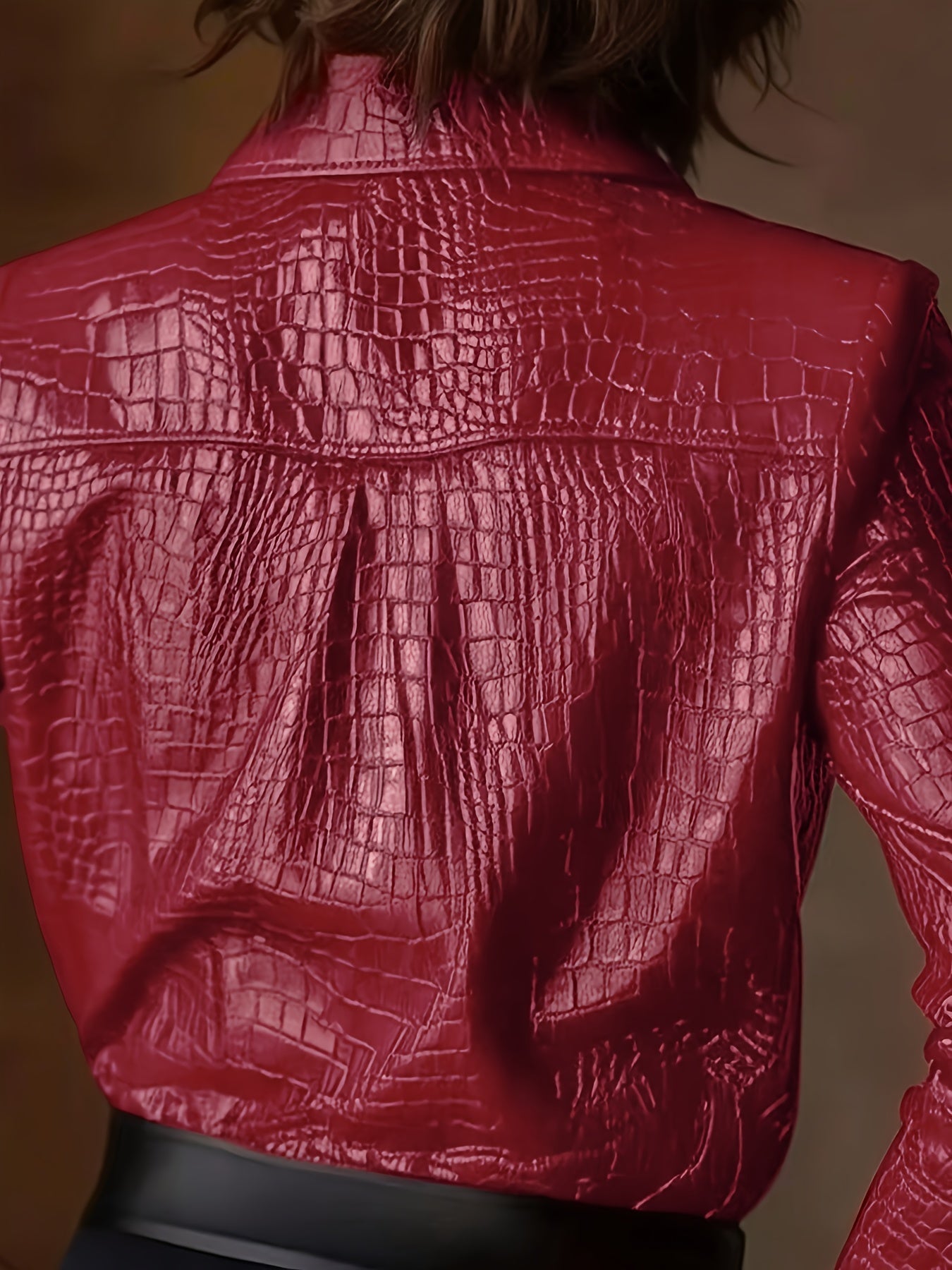 Die Samara Jacke vereint modischen Chic mit starker Funktionalität. Die feine Krokoprägung verleiht jedem Look eine subtile, luxuriöse Note. Dank dem locker geschnittenen Design und maschinenwaschbarer Qualität ist diese Jacke dein smarter Begleiter für den Alltag, wichtige Meetings oder elegante Abendgestaltungen.