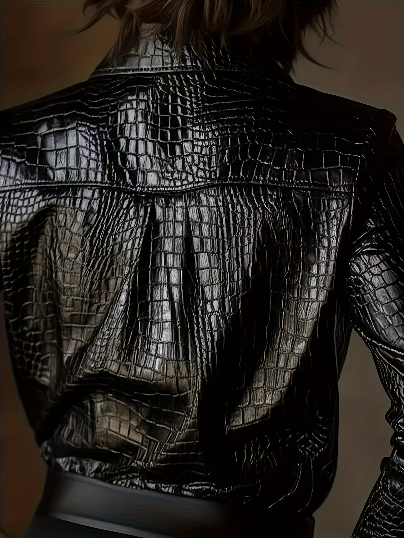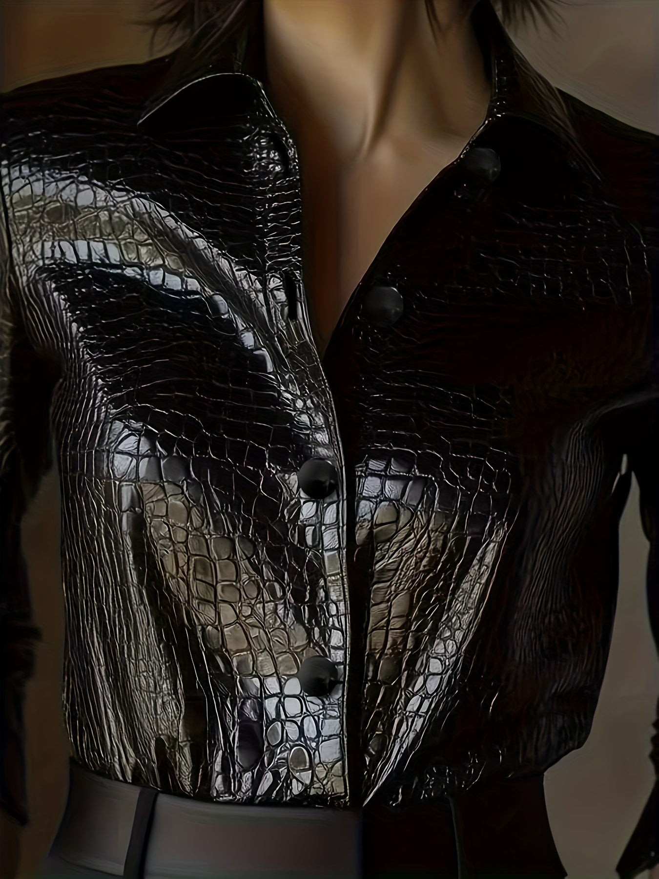 Samara – Schwarze Jacke mit Krokoprägung & lässigem Schnitt